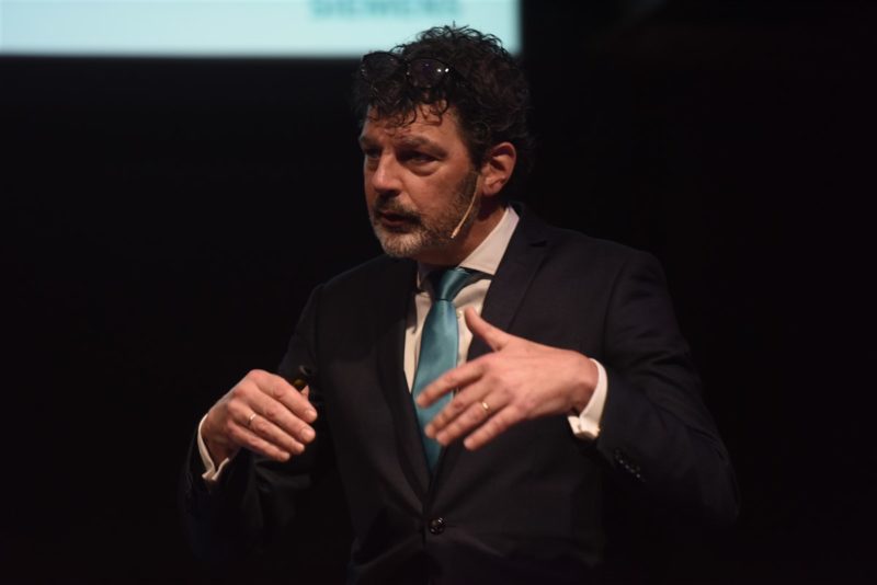 Na het verleden en het heden was de toekomst aan de beurt. Carlo van de Weijer van de TU Eindhoven was gevraagd iets over kunstmatige intelligentie te vertellen. Volgens hem een modewoord waar je alle kanten mee uitkan.“Computerkracht groeit exponentieel. Het gevolg is dat een kind in Afrika nu over meer data beschikt dan de president van de Verenigde Staten twintig jaar geleden. De volgende stap worden computers die zichzelf kunnen programmeren. In 2040 zijn ze mogelijk al slimmer dan de mens. Wellicht krijgen we dan robots die automatisch criminelen herkennen en doodschieten. Zo ver is het nog niet. Slimme camera’s zien nog niet het verschil tussen een chihuahua en een muffin. En wie bepaalt wat machines moeten doen? Er wordt geëxperimenteerd met automatisch rijdende auto’s. Maar recent knalde zo’n Tesla op een vangrail, nadat een schuin lopende naad in het wegdek voor wegbelijning werd aangezien.” Andere problemen zijn volgens Van de Weijer dat slimme apparaten vaak ruimdenkend met privacy omgaan. De spreker stelde de zaal gerust met de voorspelling dat veiligheid altijd een basisbehoefte zal blijven. Wel zal het meer gaan om een veilig gevoel dan om feitelijke veiligheid.